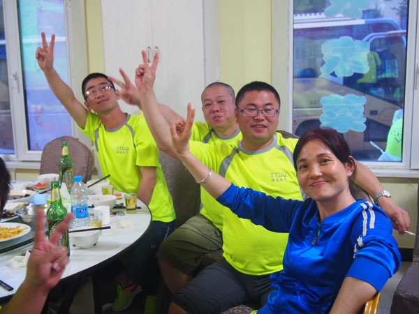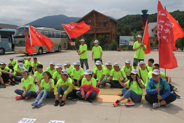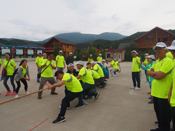14日清晨,“微風(fēng)與腳步同行,陽(yáng)光共笑容一色”,亞布力鍋盔山我們來(lái)了,急切要投入青山綠水的懷抱,三個(gè)小時(shí)的車程,到了目的地大家下車首先看到的就是驚喜,我們住的是林區(qū)的木制別墅,房間里充滿了樹木的清香。大家放下包來(lái)到飯店,中午公司給大家準(zhǔn)備了可口的飯菜,大家不知是餓了還是農(nóng)家綠色菜肴的美味,吃得個(gè)快活逍遙。大家快速吃完飯就來(lái)到了拓展訓(xùn)練場(chǎng)地集結(jié)。