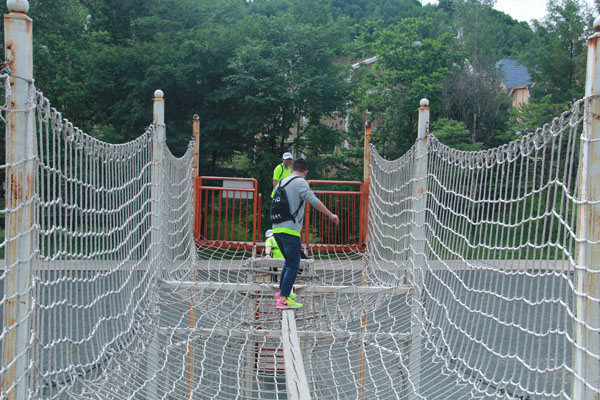 15日清晨,“浮天水送無(wú)窮樹,帶雨云埋一半山”經(jīng)過(guò)夜色雨水的沐浴,鍋盔山顯得格外迷人,我們一路觀賞著山間美色來(lái)到鍋盔山公園,公園里的拓展項(xiàng)目真是不少,同事們?cè)谝粋€(gè)個(gè)項(xiàng)目中體會(huì)到了汗水與快樂(lè),一上午的光陰轉(zhuǎn)眼即逝,中午短暫吃完飯就向著哈爾濱方向出發(fā)。別了鍋盔山,你的美已經(jīng)留在了特通員工的記憶中。